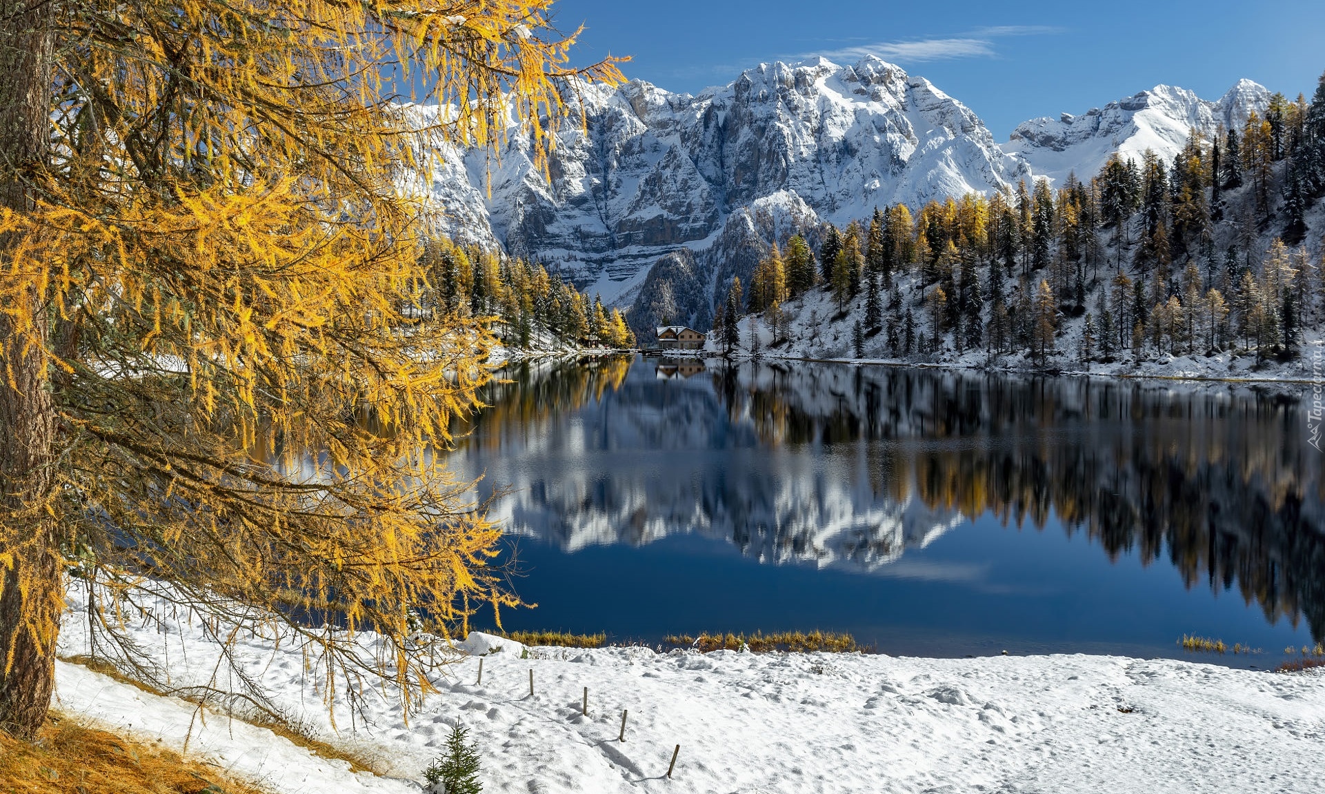Edytor tapety: Ośnieżone góry i jezioro Lago delle Malghette