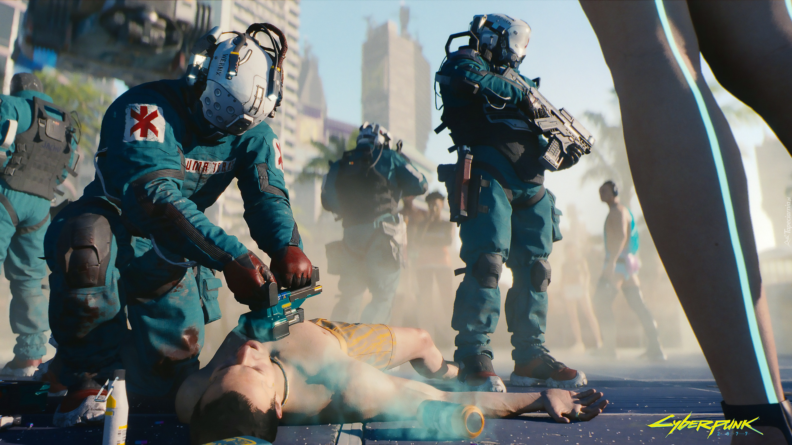 Edytor tapety: Scena reanimacji z gry Cyberpunk 2077