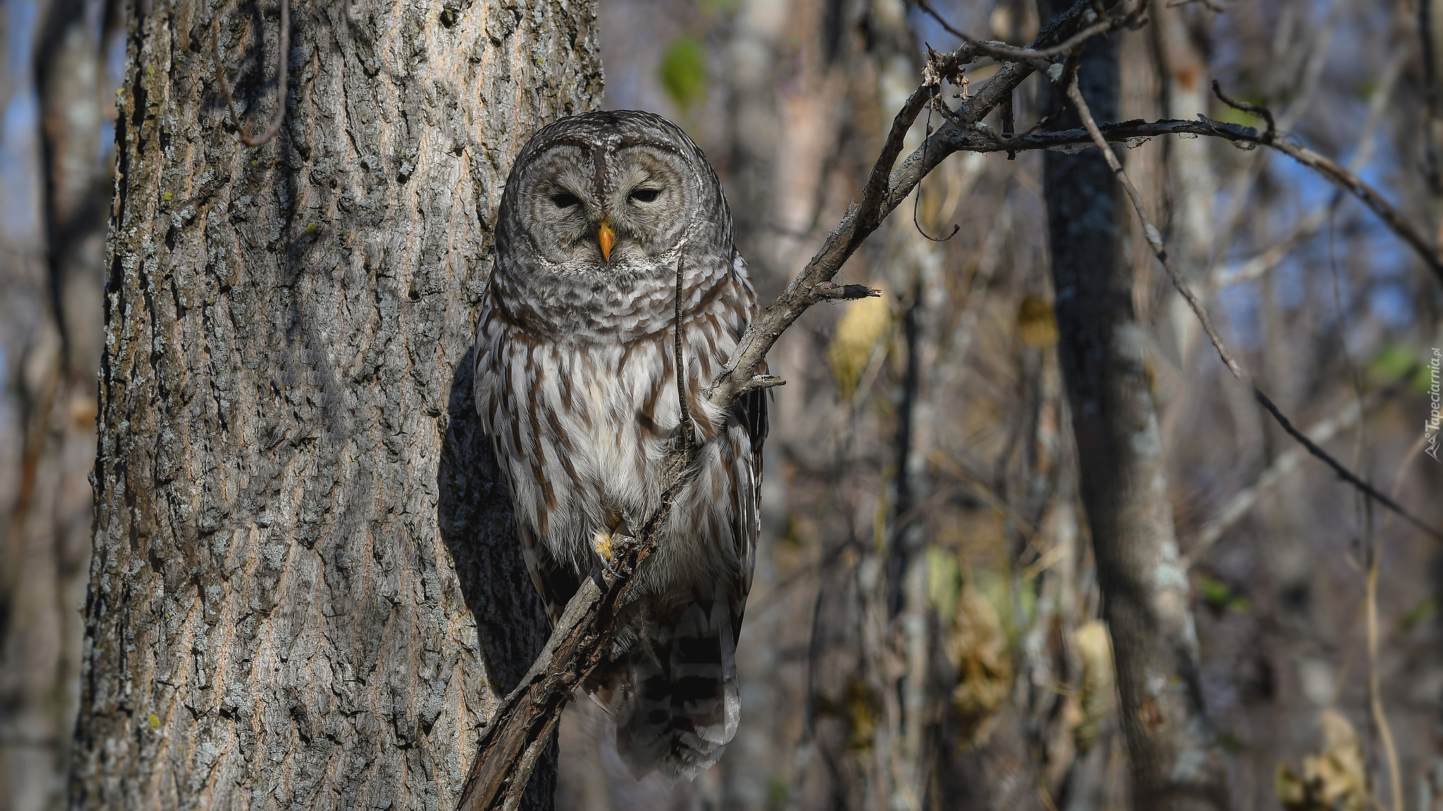 Edytor tapety: Puszczyk kreskowany na gałązce