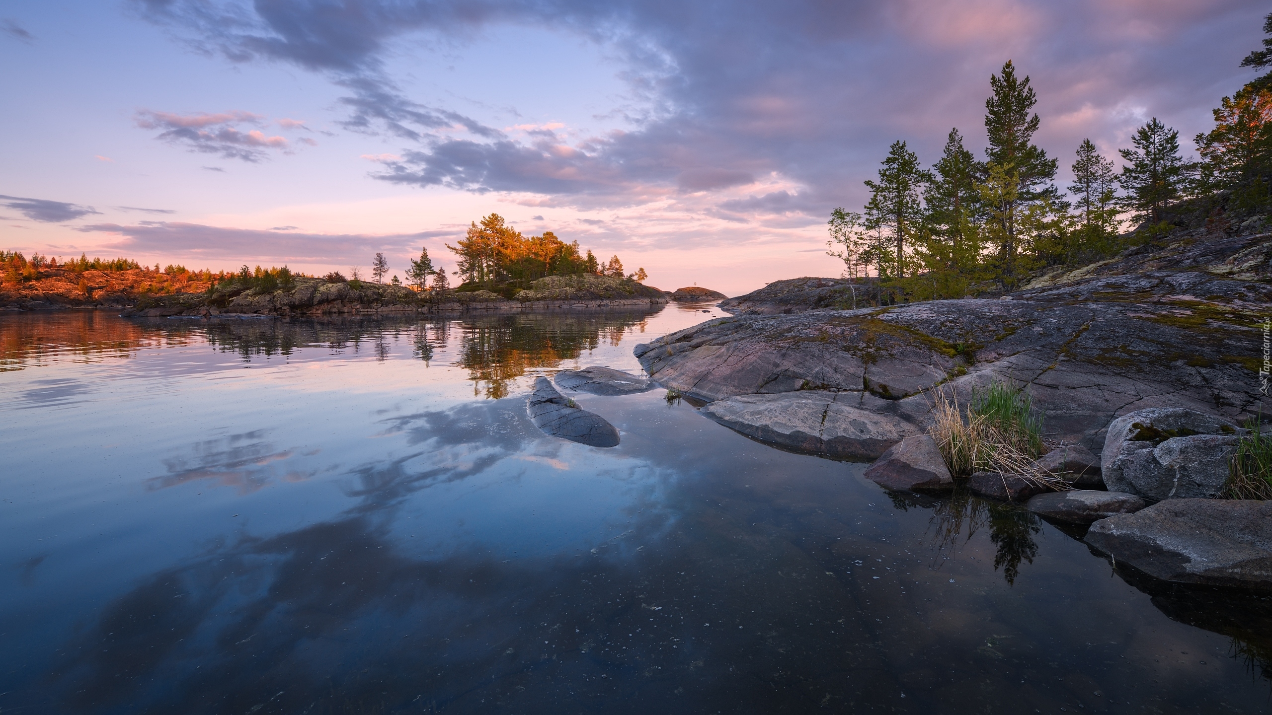 Edytor tapety: Drzewa na skałach na brzegu jeziora Ładoga