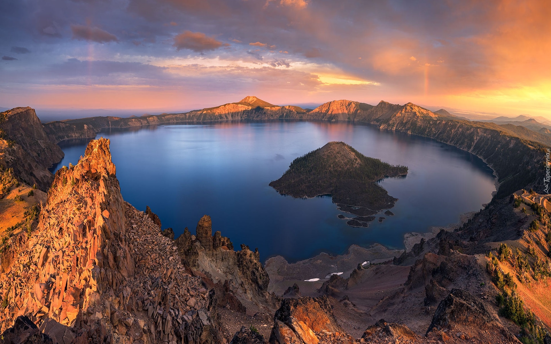 Edytor tapety: Wyspa Czarodzieja na górskim Jeziorze Kraterowym w Oregonie