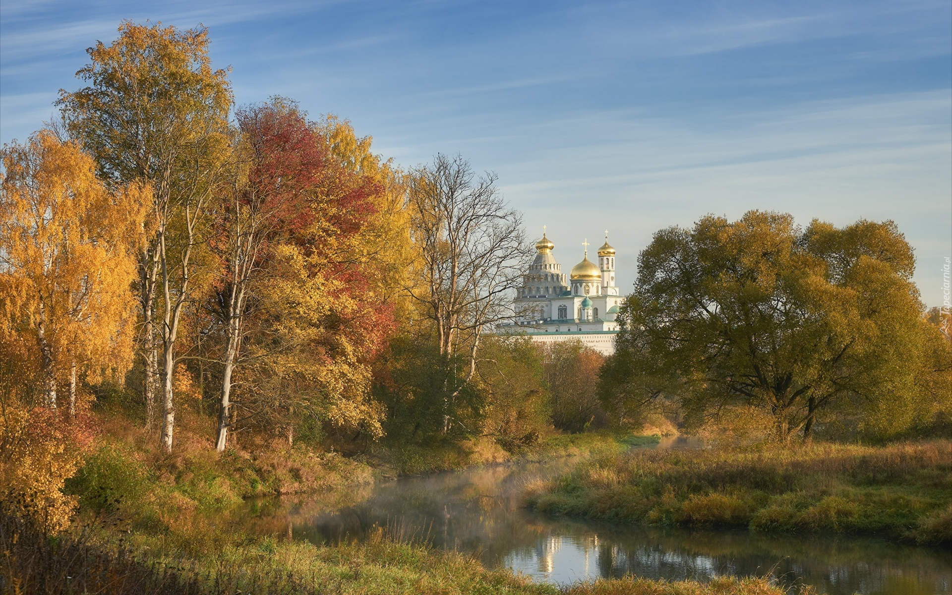 Edytor tapety: Pożółkłe drzewa nad rzeką Istra