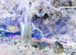 Edytor tapety: Kamienie pod rozłożystym drzewem oliwnym