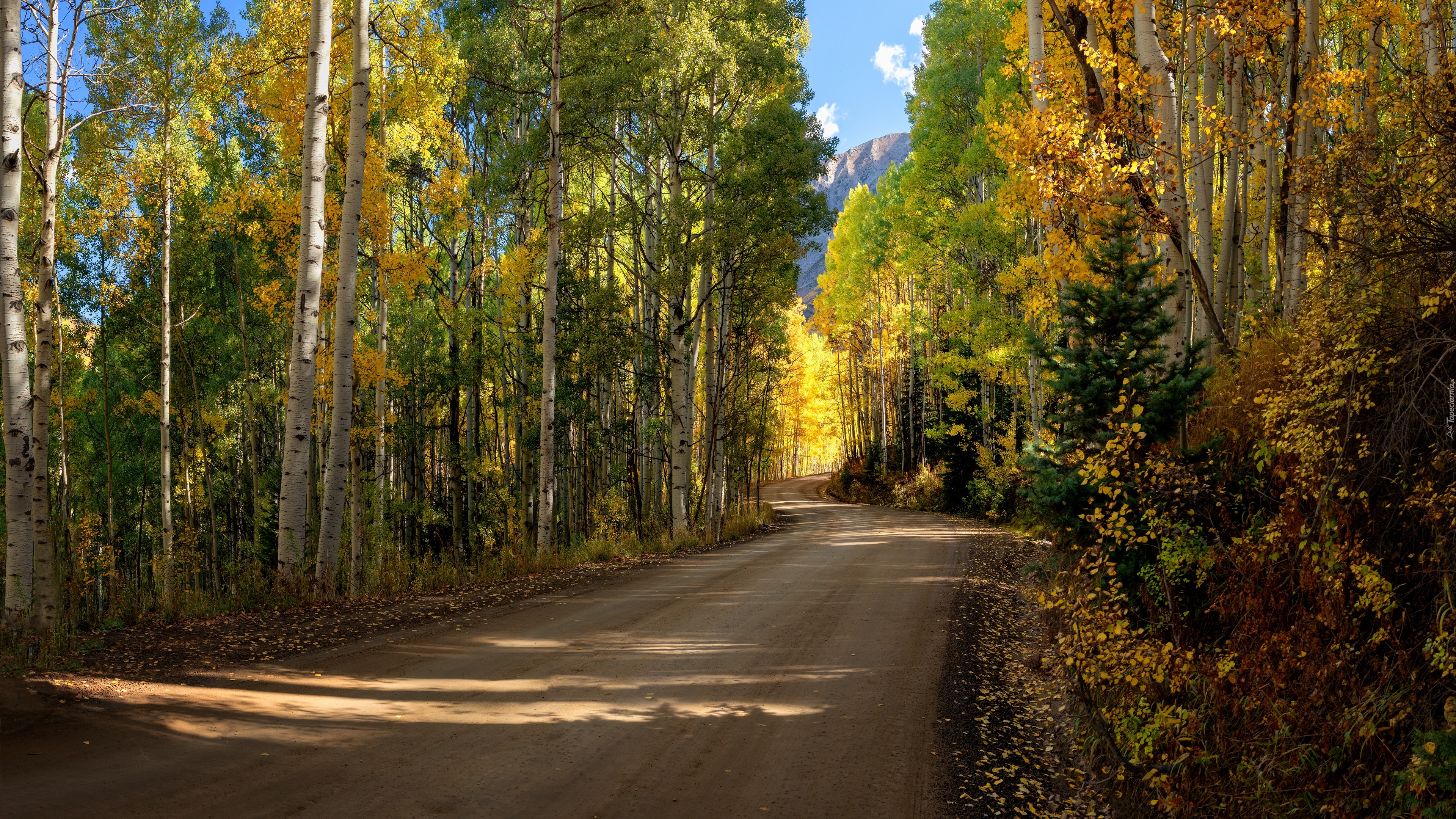 Edytor tapety: Topole osikowe i krzewy na poboczu drogi