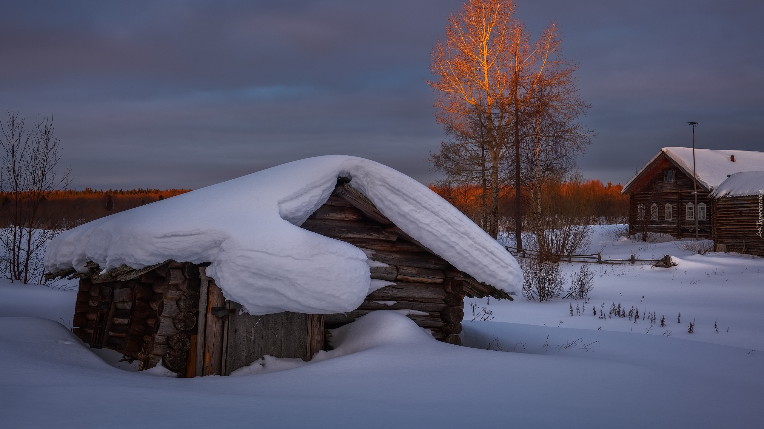 Edytor tapety: Zaśnieżona szopa w zaspach