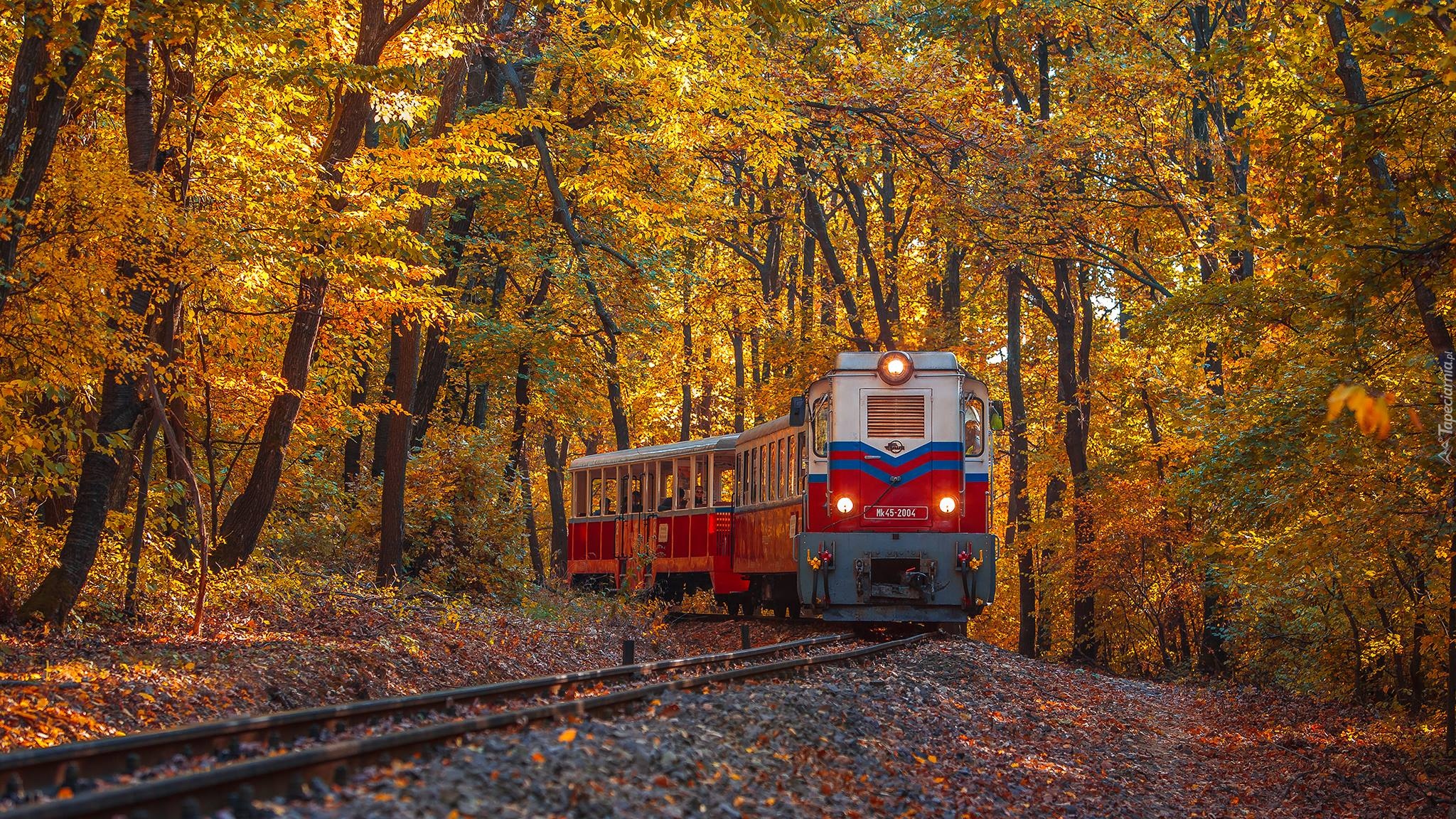 Edytor tapety: Pociąg osobowy w jesiennym lesie