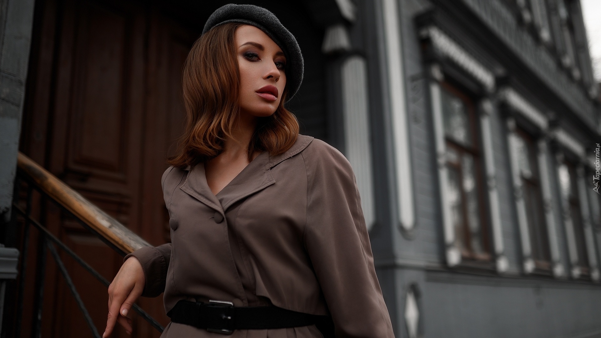 Edytor tapety: Kobieta w berecie i płaszczu