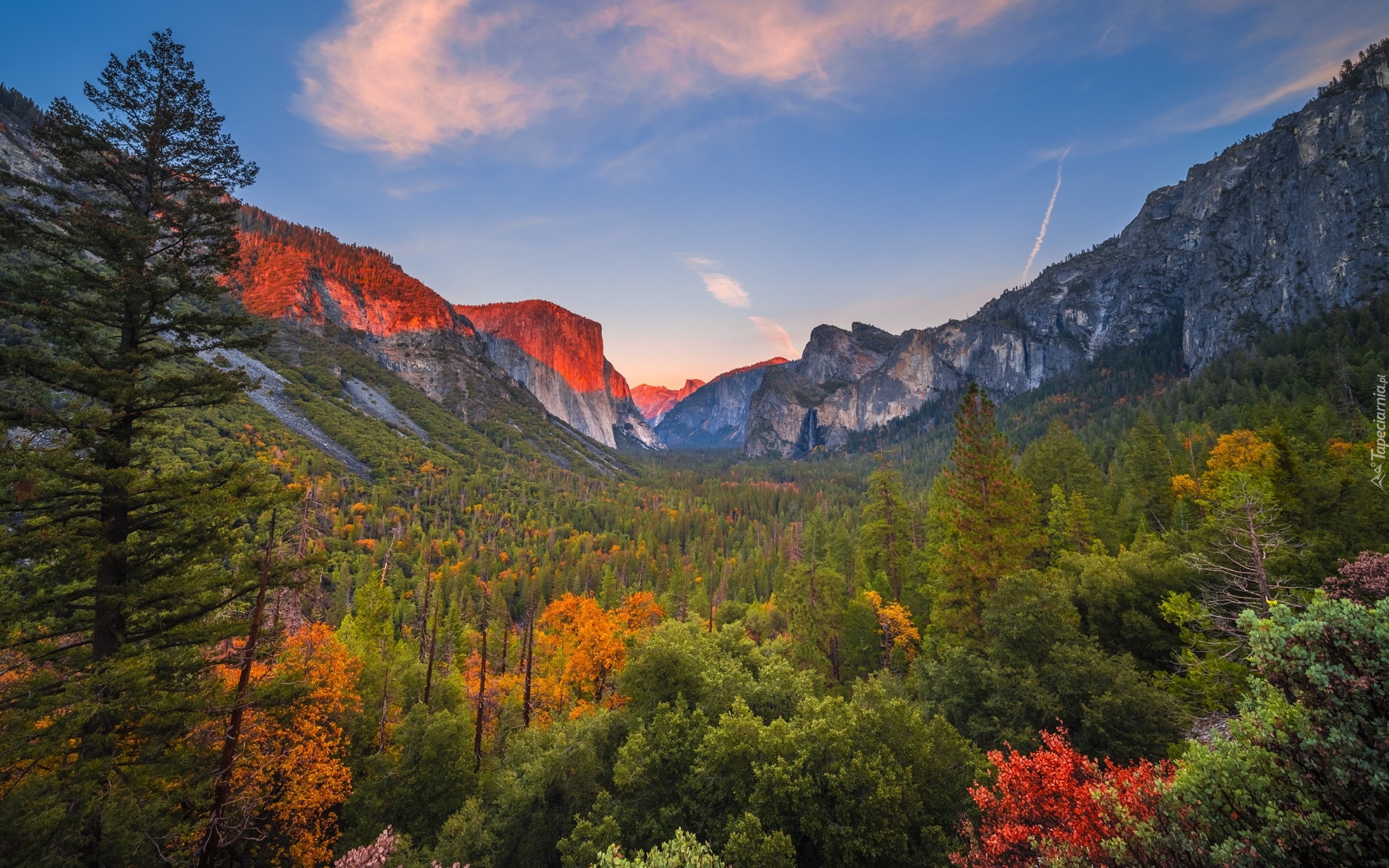 Edytor tapety: Rozświetlone szczyty Sierra Nevada i Yosemite Valley jesienią