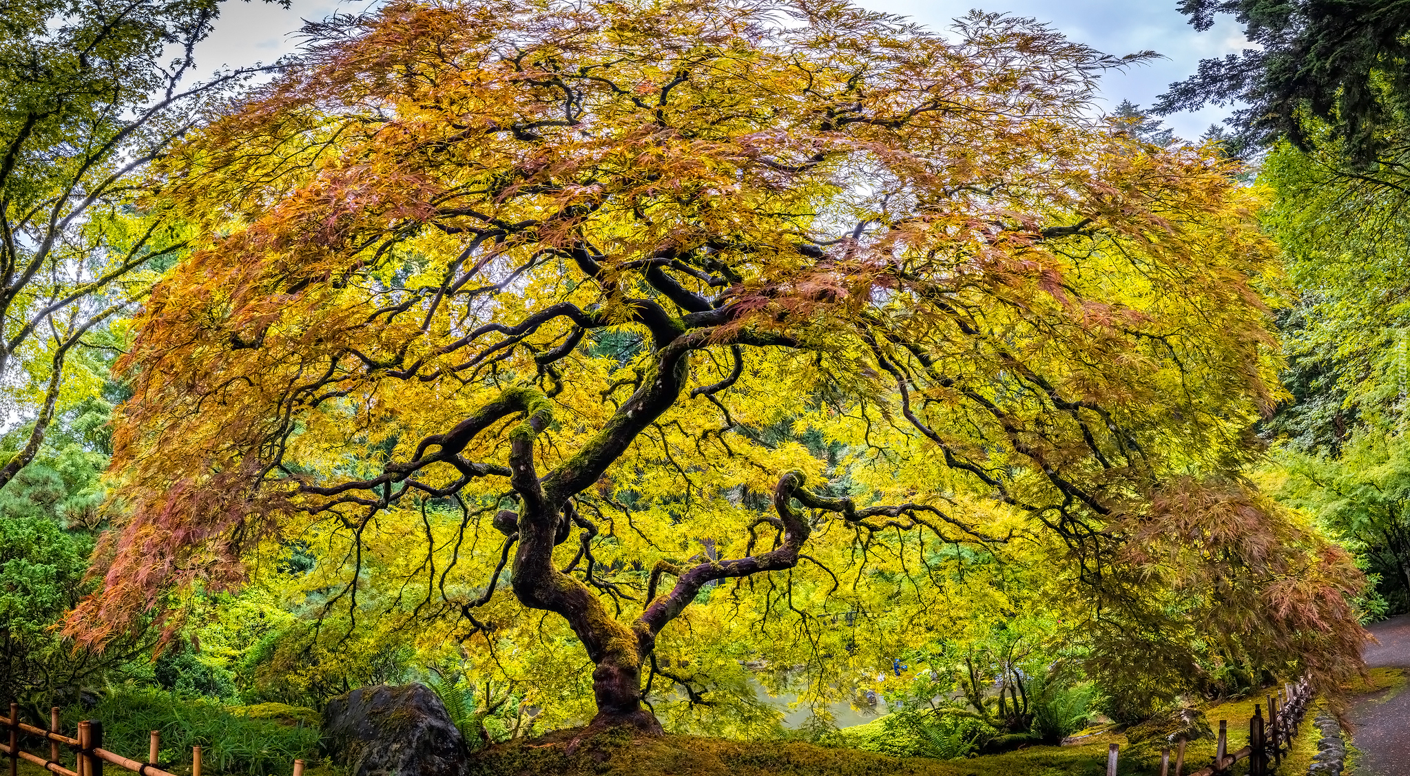 Edytor tapety: Rozłożysty klon palmowy w ogrodzie