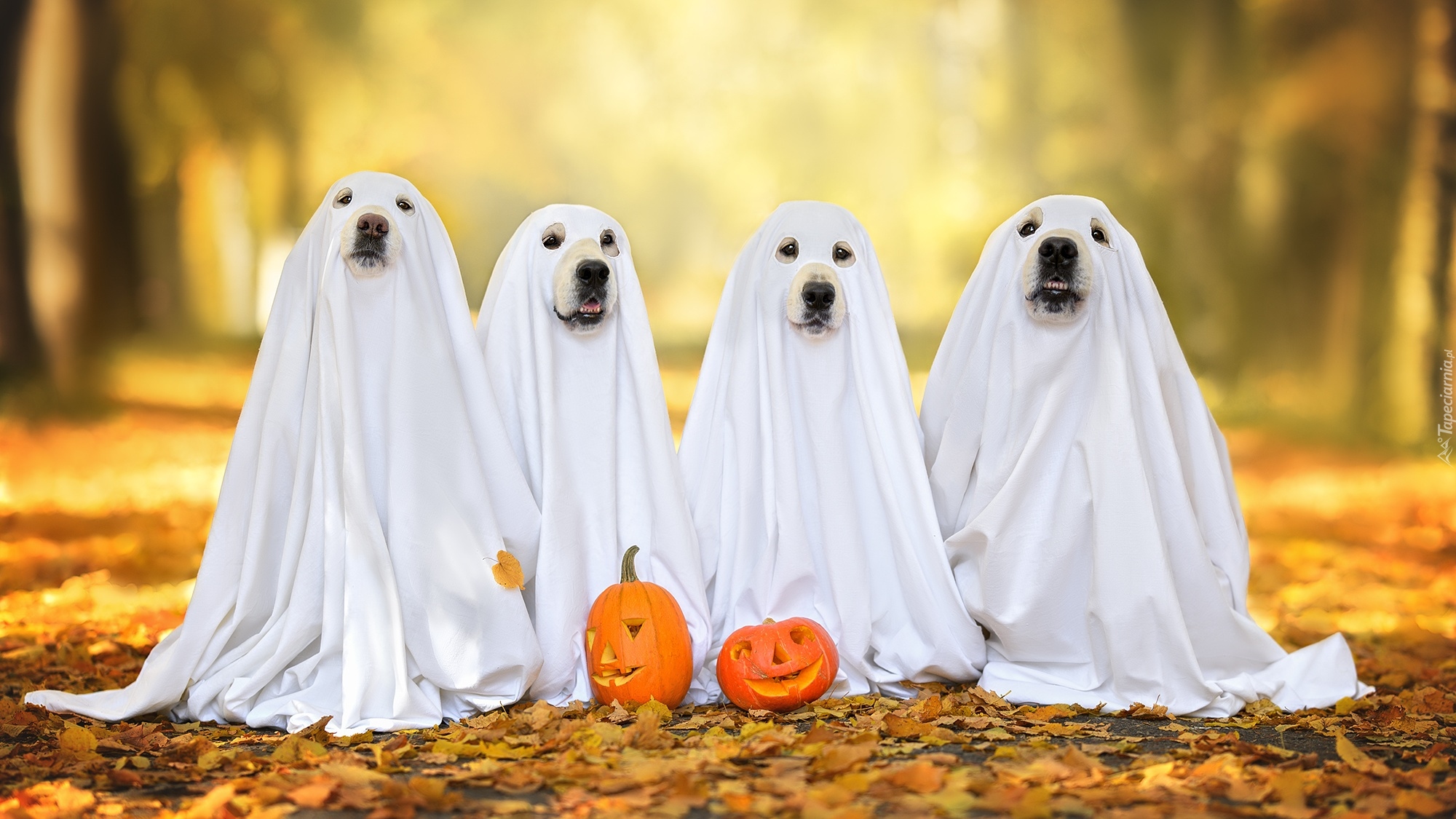 Edytor tapety: Cztery psy przebrane na Halloween