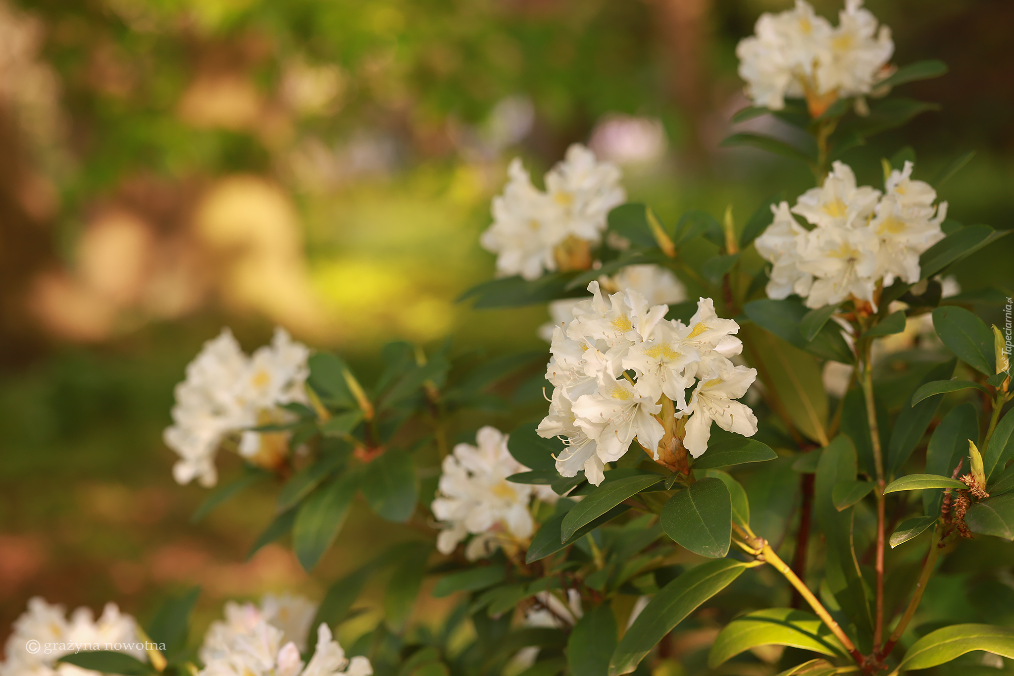 Edytor tapety: Białe kwiaty różanecznika na krzewie