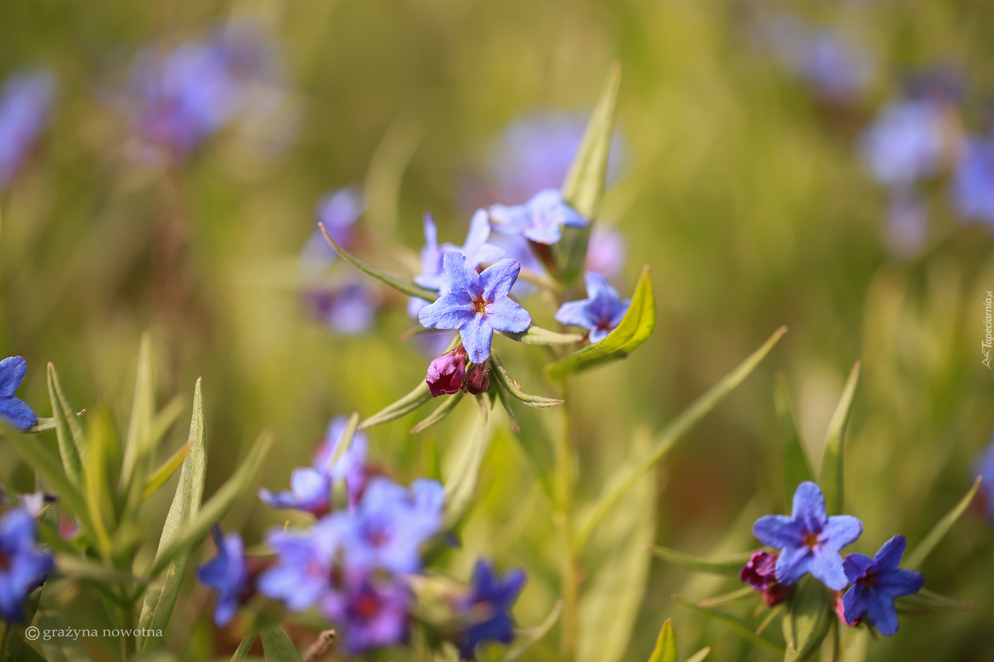 Edytor tapety: Niebieskie kwiaty na rozmytym tle