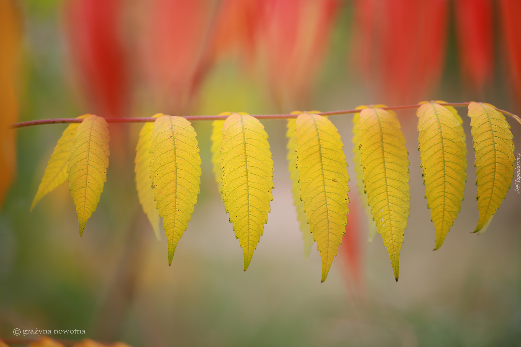 Edytor tapety: Jesienne liście koloru żółtego na rozmytym tle