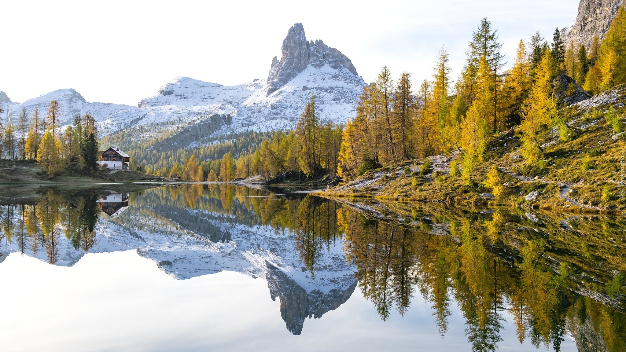 Edytor tapety: Pożółkłe drzewa nad jeziorem Lago Federa
