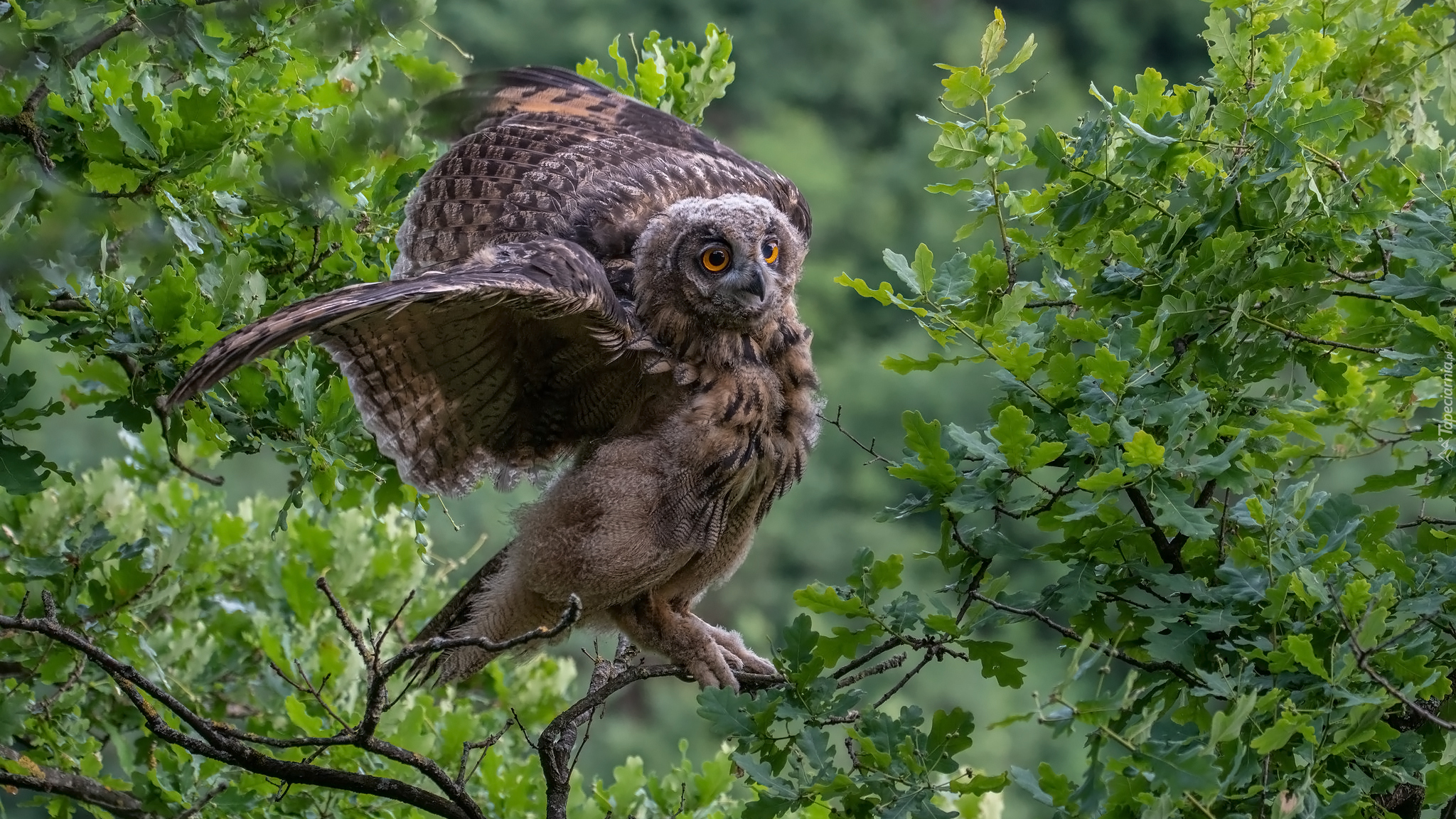 Edytor tapety: Puchacz zwyczajny na gałązce