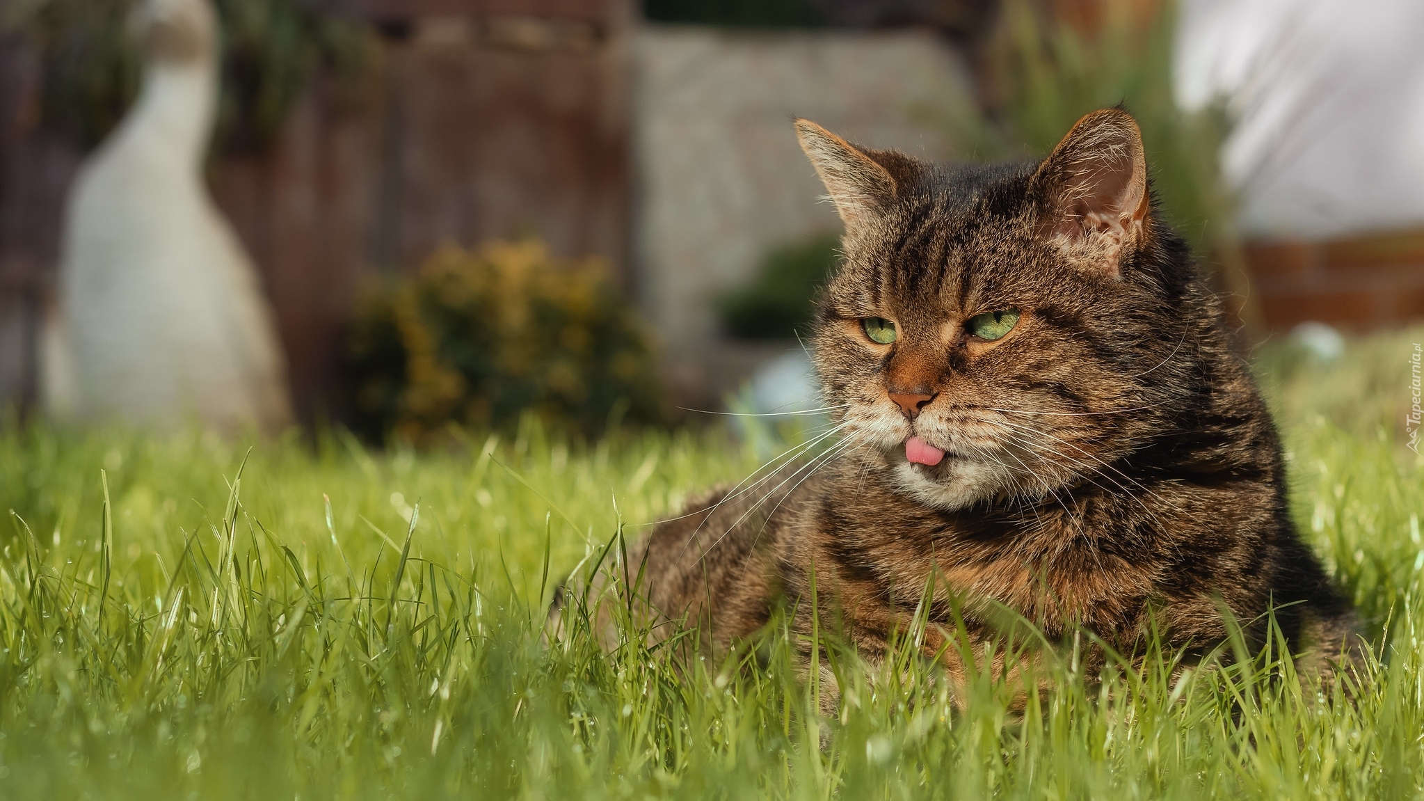 Edytor tapety: Bury kot z wystawionym językiem