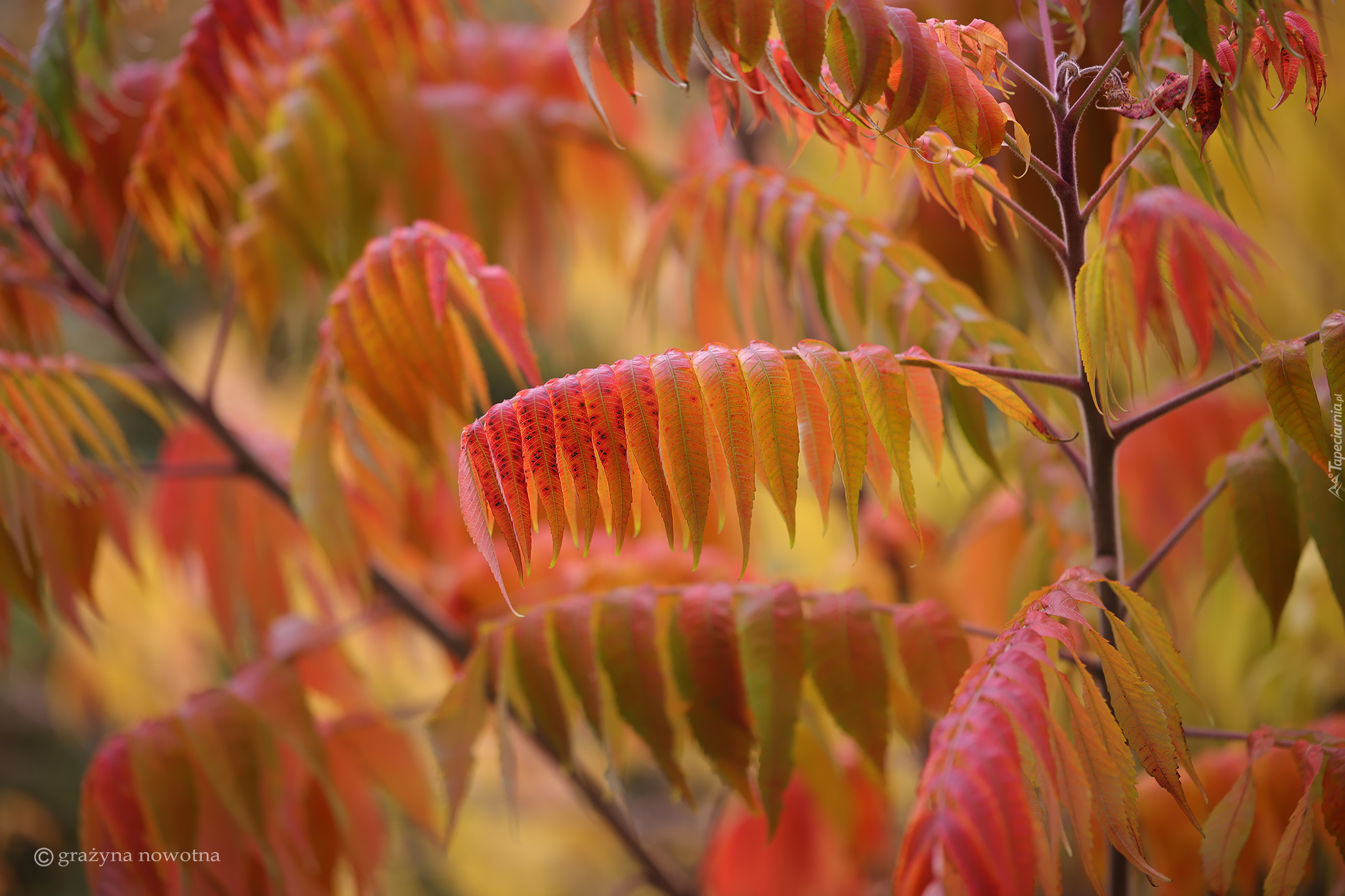 Edytor tapety: Czerwone jesienne liście na gałązkach