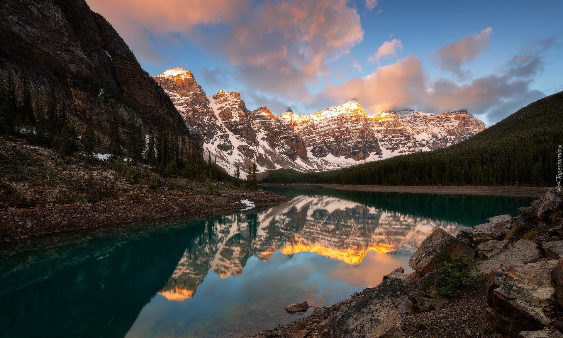 Edytor tapety: Jezioro Moraine i góry pod chmurami