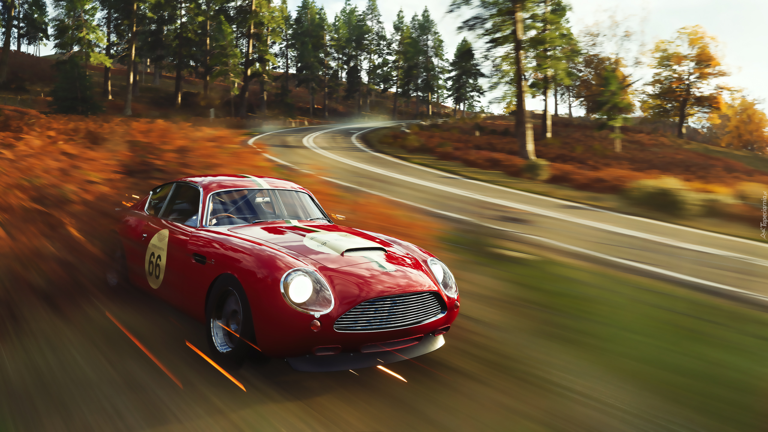 Edytor tapety: Czerwony Aston Martin z gry Forza Horizon 4