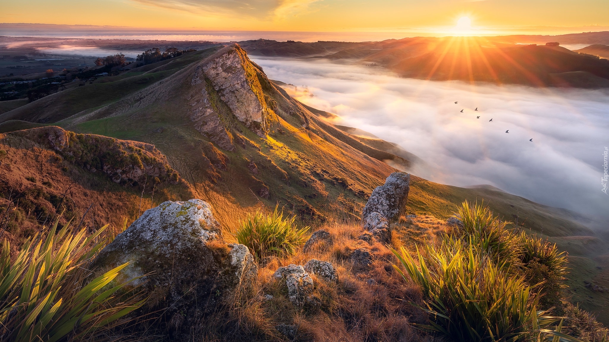 Edytor tapety: Dolina rzeki Tukituki River w porannej mgle