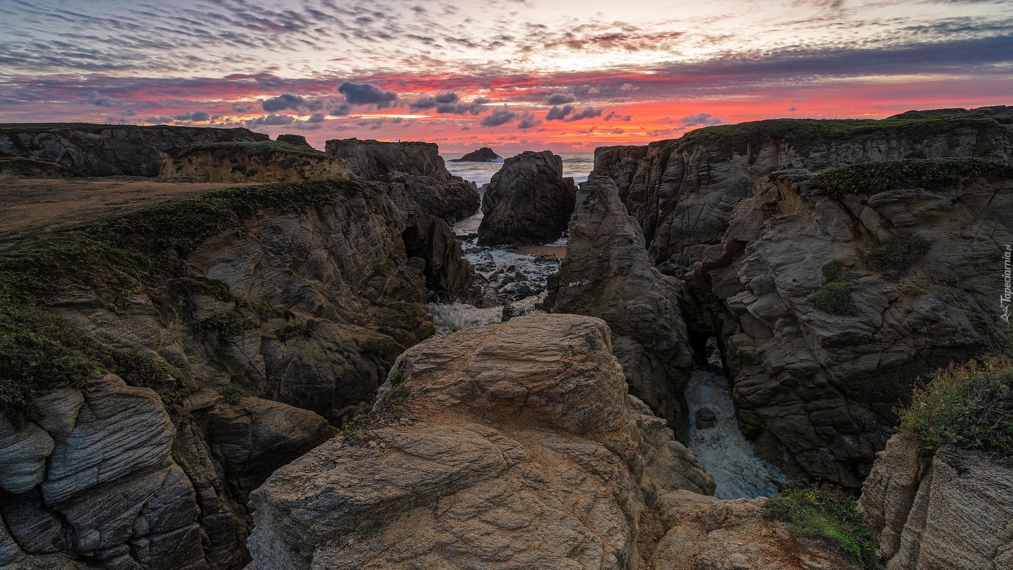 Edytor tapety: Chmury nad skalistym wybrzeżem Bretanii