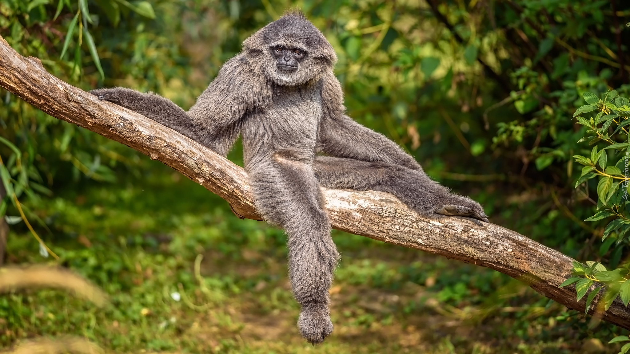 Edytor tapety: Srebrzysty gibbon na gałęzi