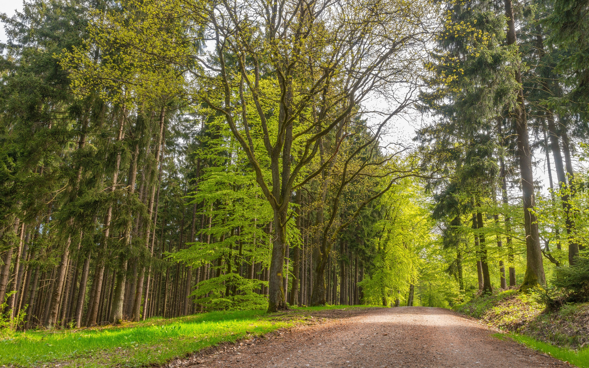 Edytor tapety: Zielone drzewa po obu stronach drogi