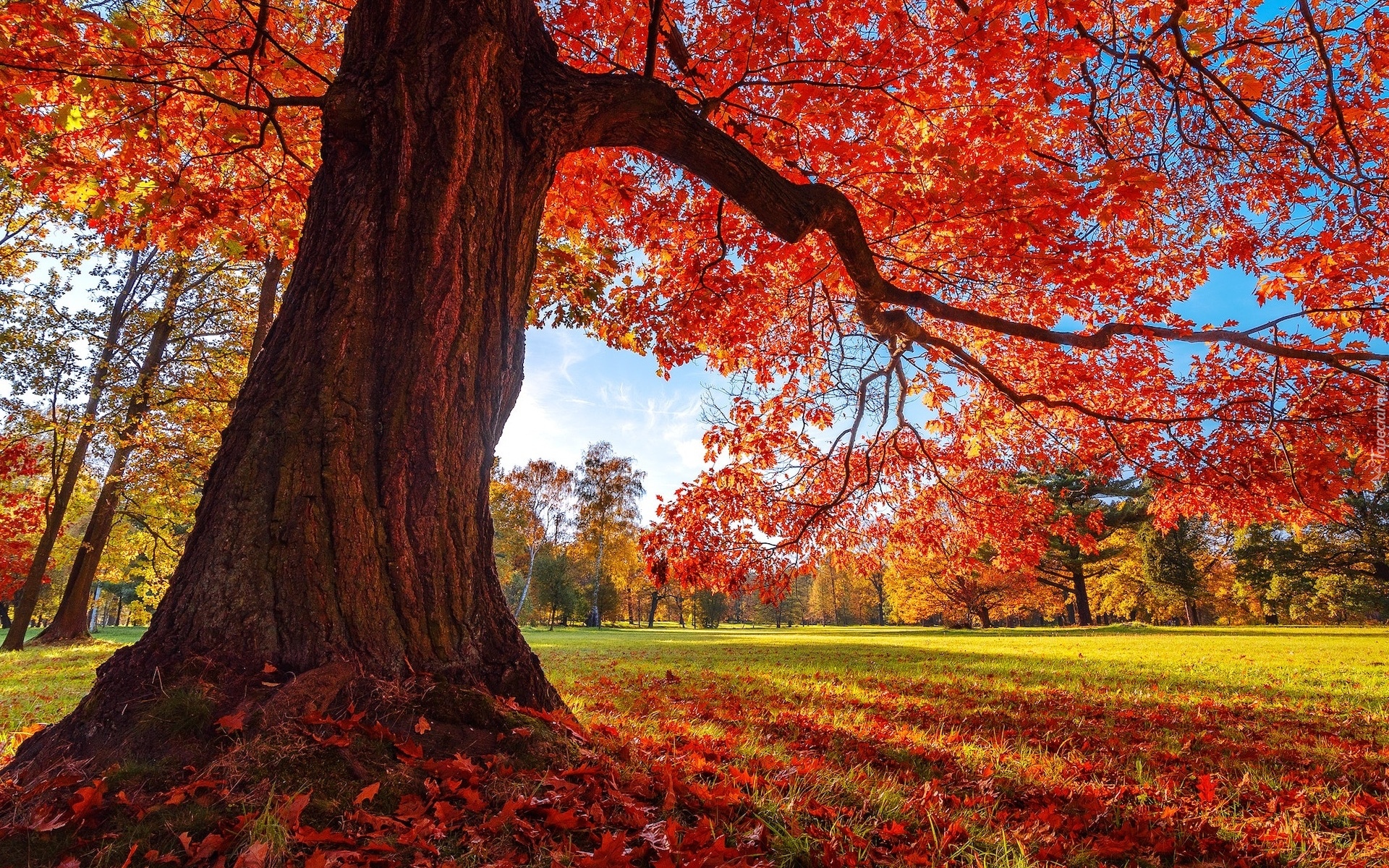 Edytor tapety: Dąb czerwony w słonecznym parku