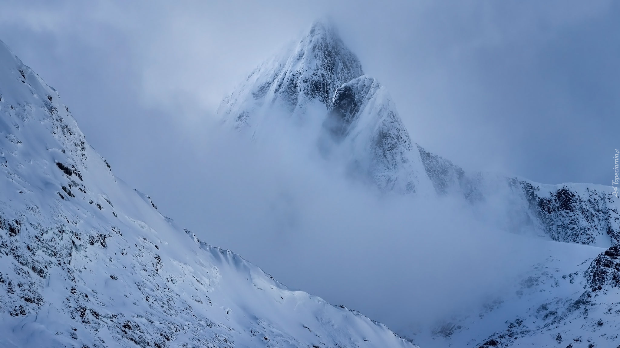 Edytor tapety: Zamglone i zaśnieżone szczyty gór