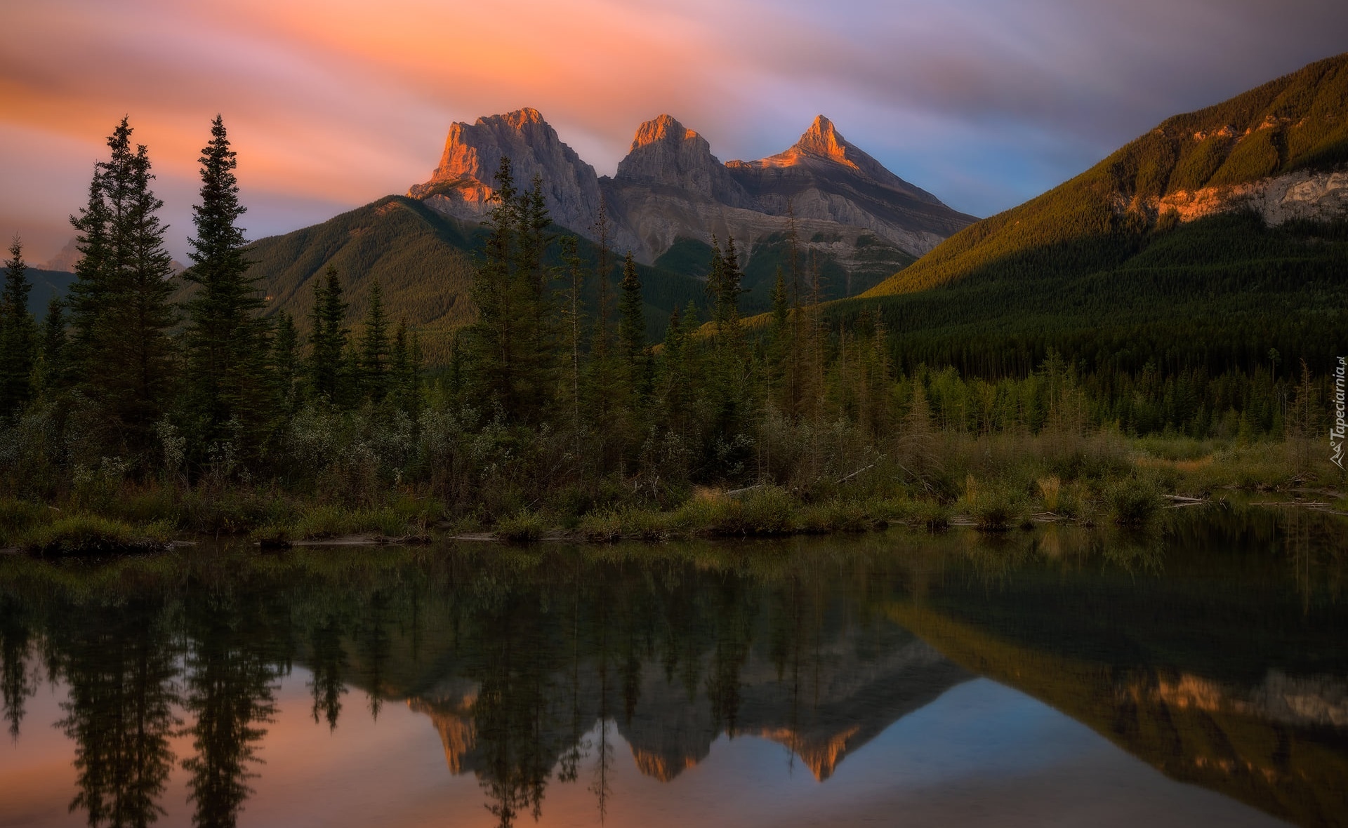 Edytor tapety: Góra Three Sisters i rzeka Policeman Creek