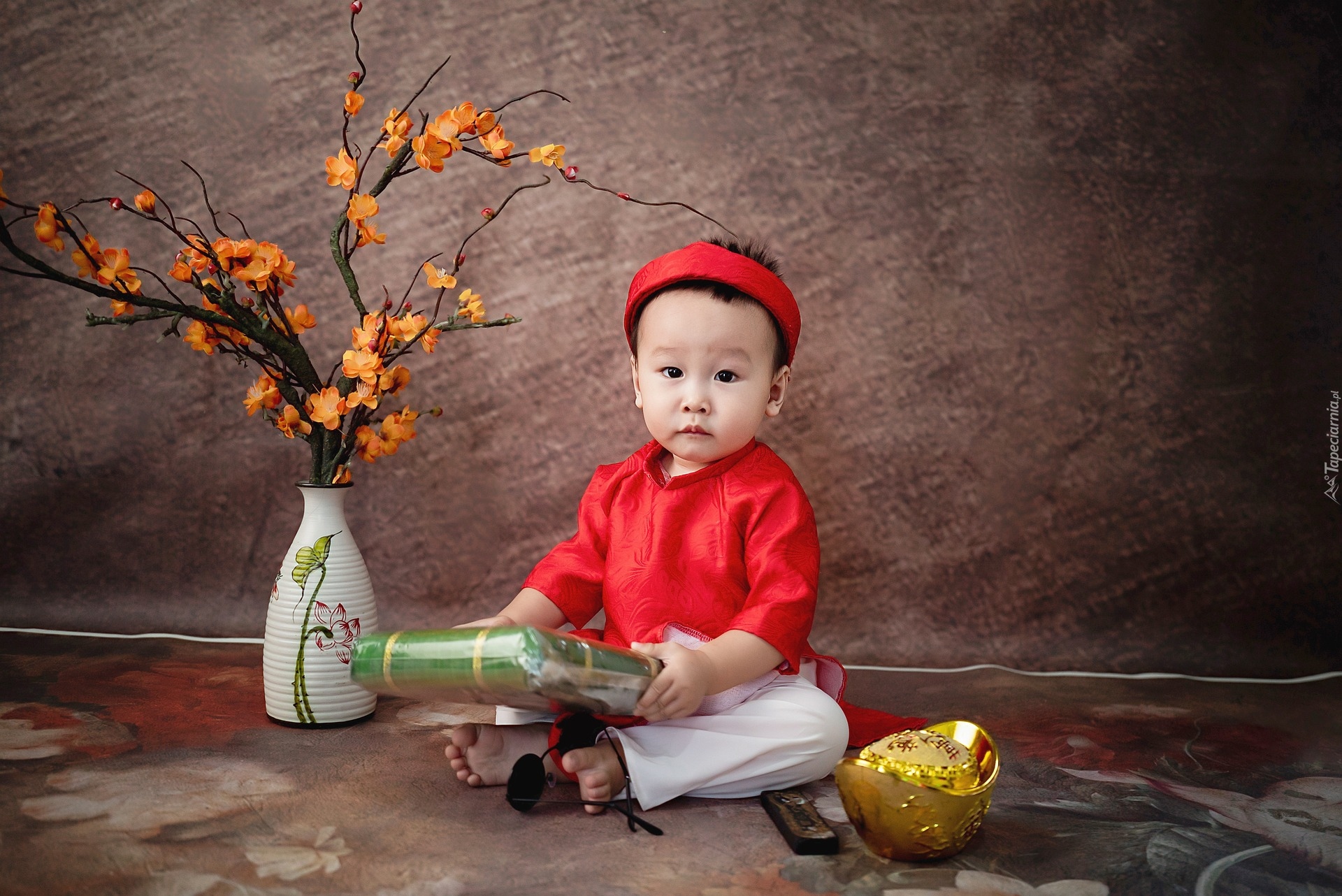 Edytor tapety: Male dziecko w tradycyjnym stroju wietnamskim