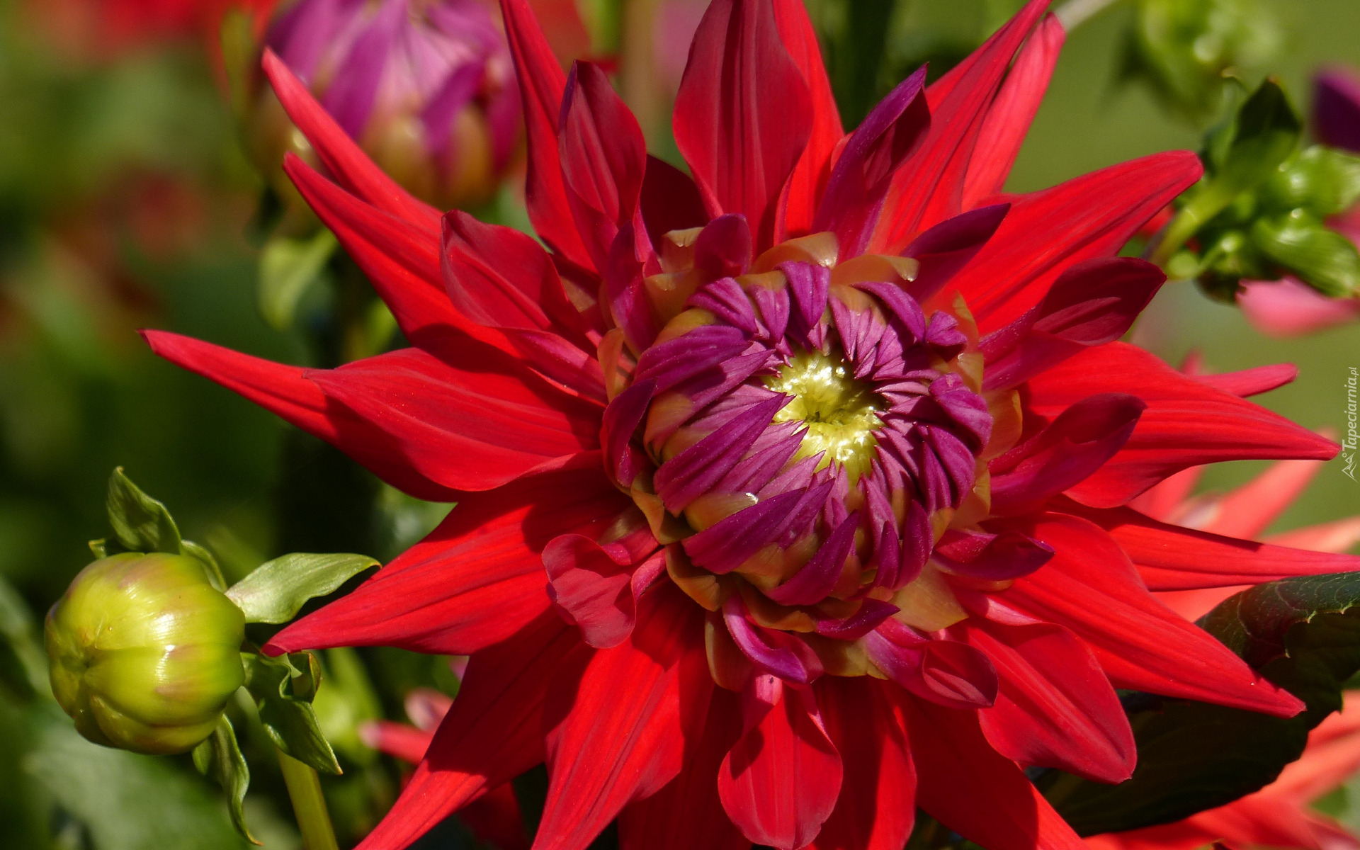 Edytor tapety: Czerwona dalia z pąkiem