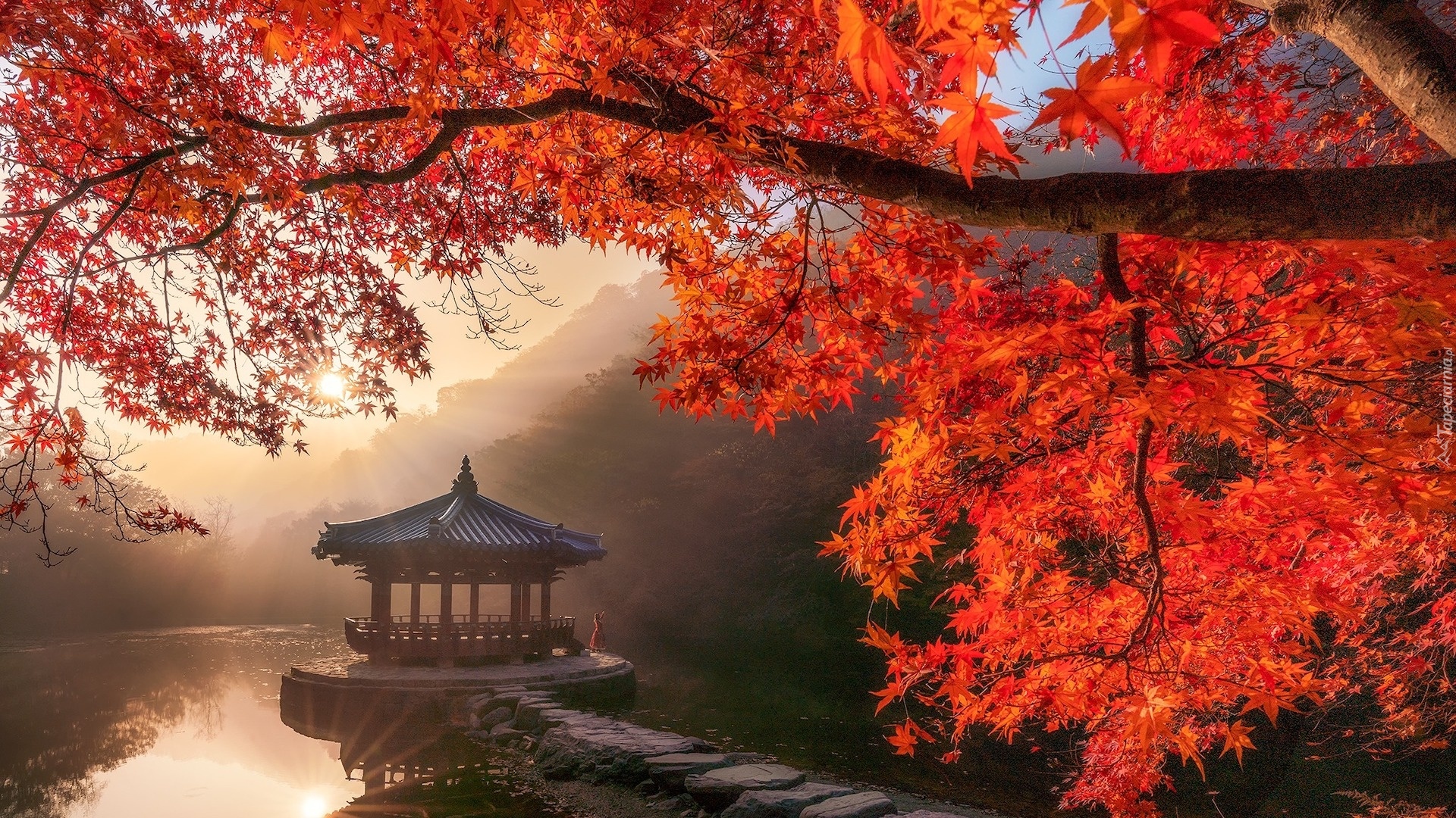 Edytor tapety: Pawilon Ukimido nad stawem Sagiike