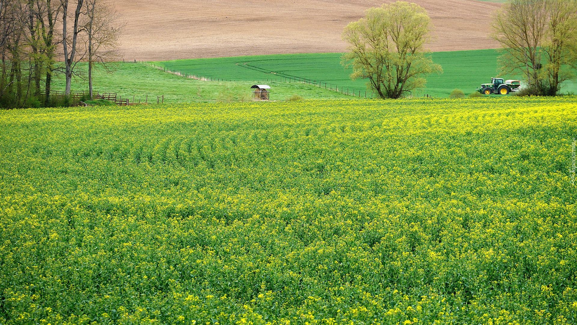Edytor tapety: Drzewa na polu rzepaku