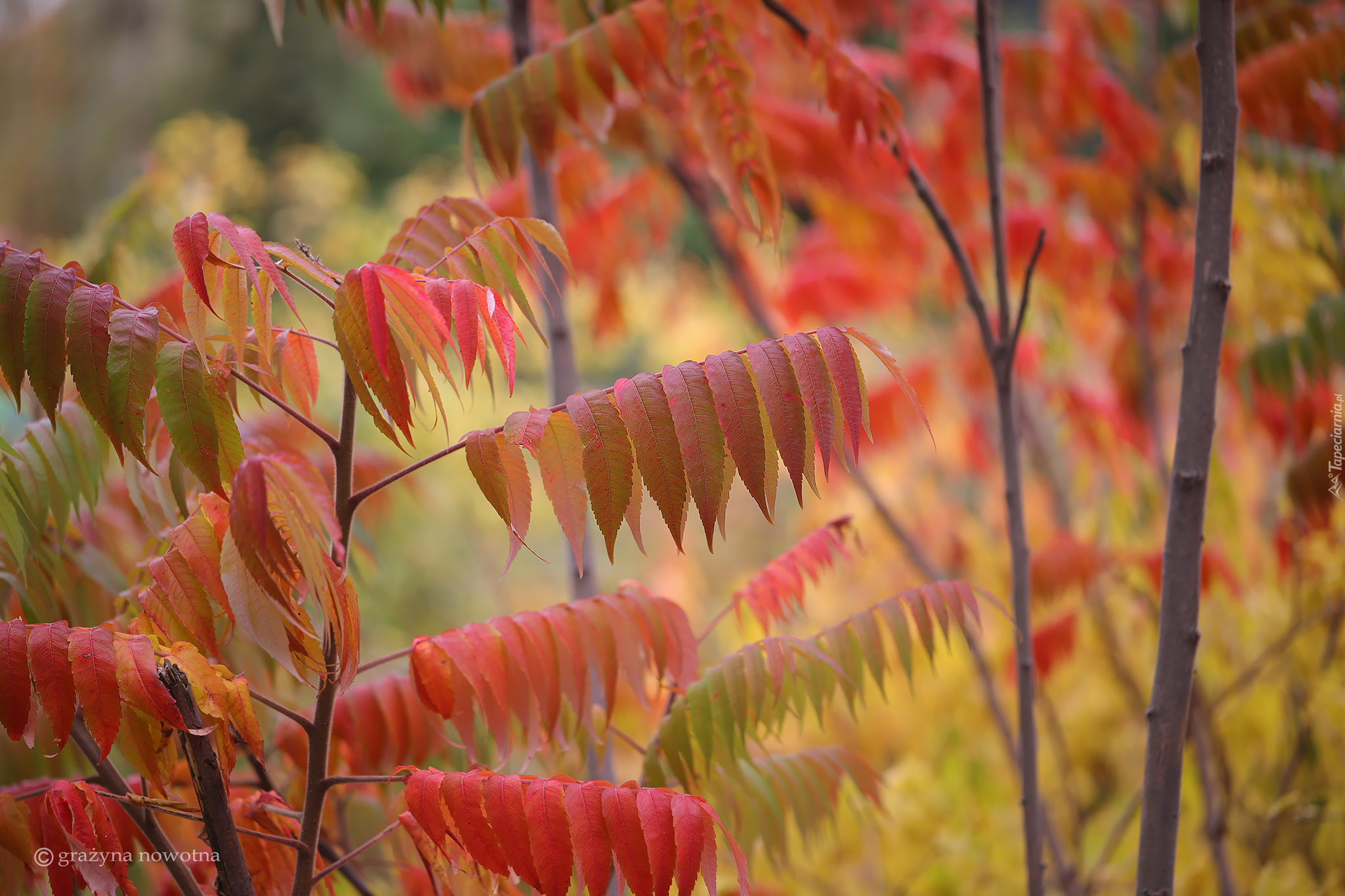 Edytor tapety: Czerwone liście sumaka ostrowca