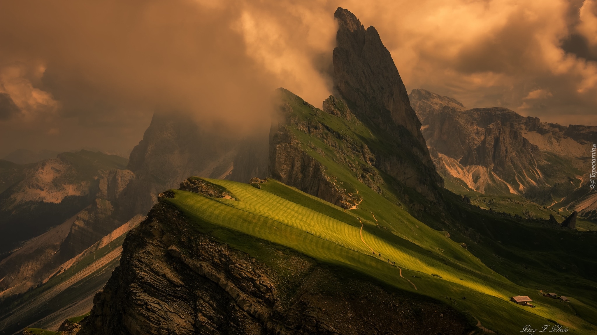 Edytor tapety: Szczyt Seceda w zamglonych Dolomitach