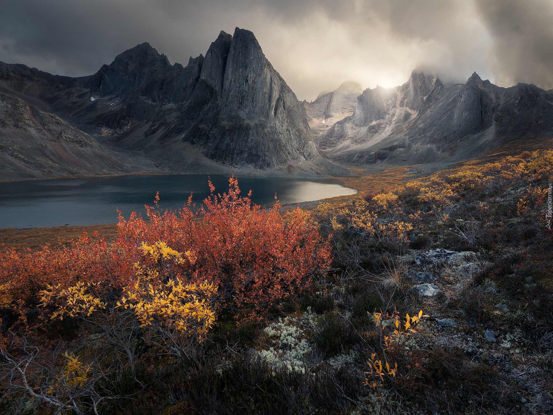 Edytor tapety: Jesienne rośliny nad górskim jeziorem