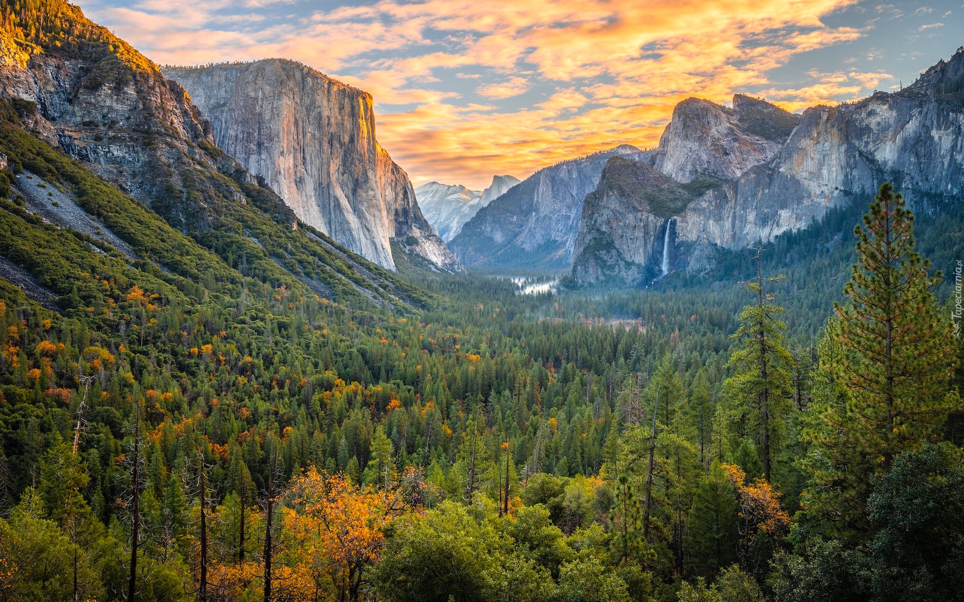 Edytor tapety: Kolorowe niebo nad górami w Parku Narodowym Yosemite