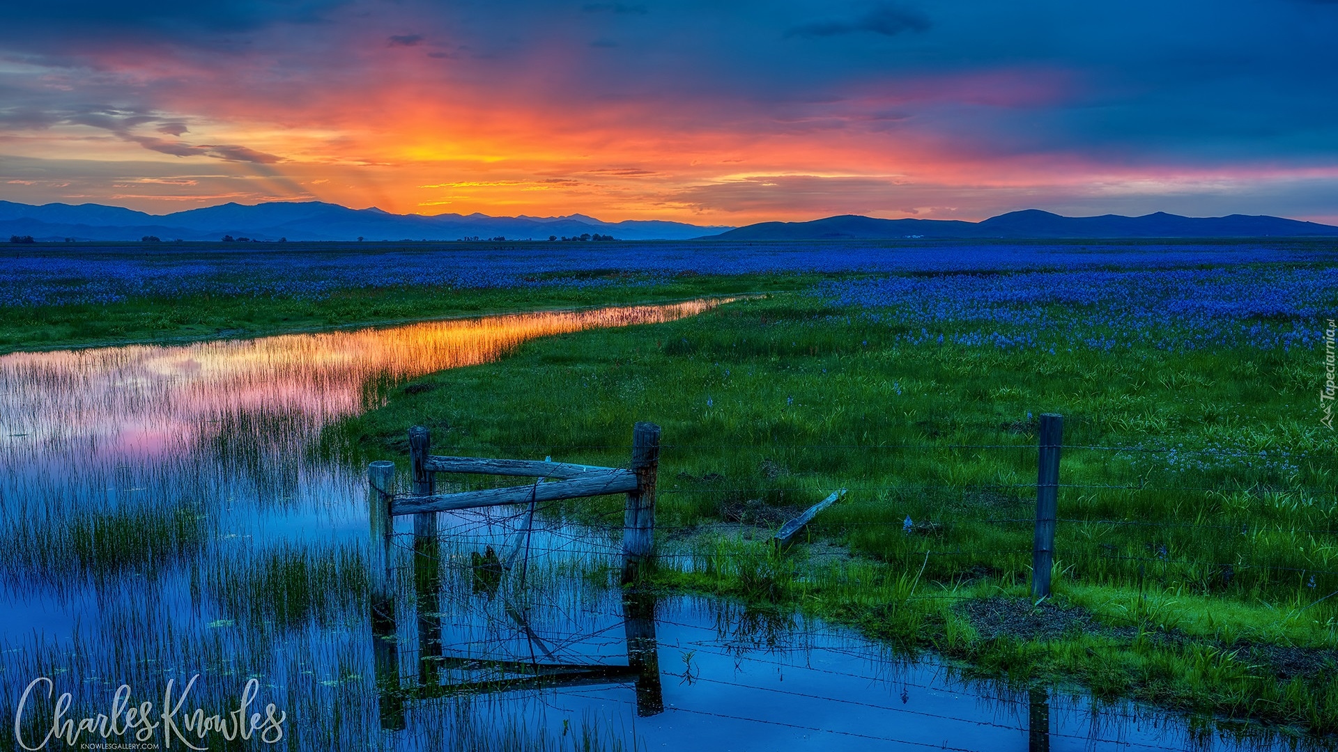 Edytor tapety: Mokradła i łąki o wschodzie słońca