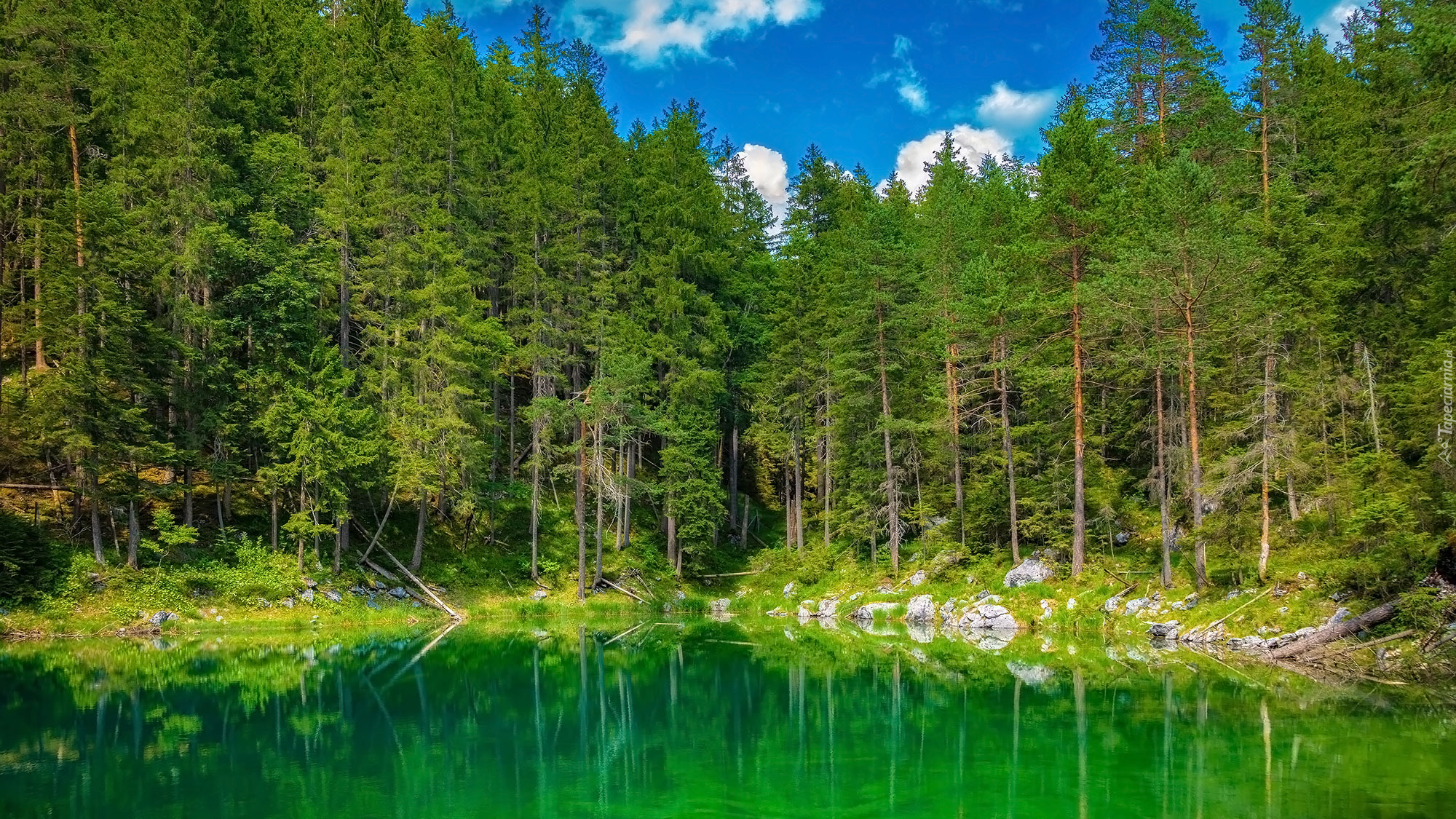 Edytor tapety: Zielone drzewa na brzegach jeziora Eibsee