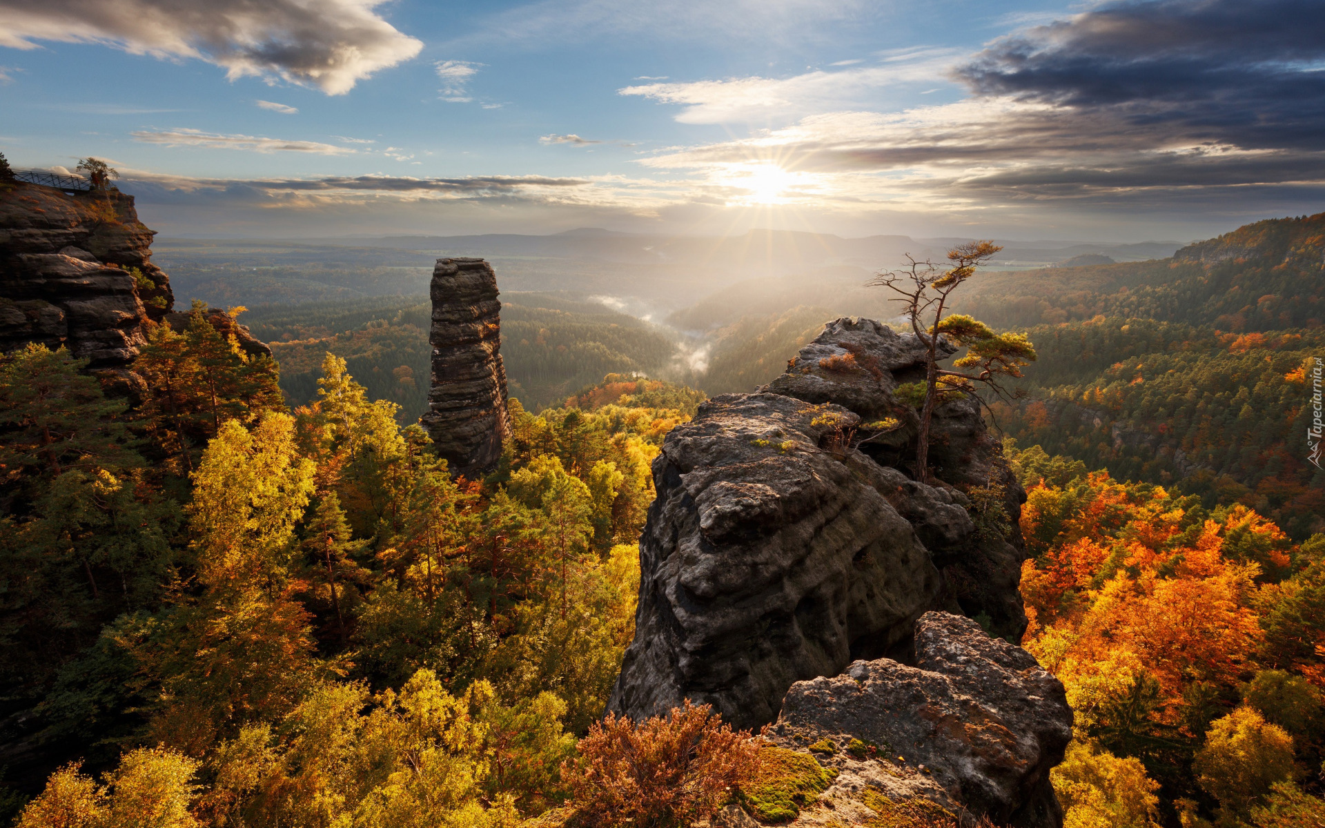 Edytor tapety: Jesienny Park Narodowy Saskiej Szwajcarii w słonecznym blasku