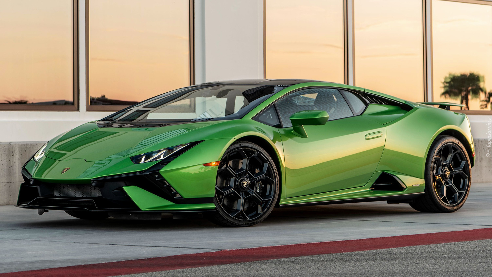 Edytor tapety: Zielone Lamborghini Huracan Tecnica bok i przód
