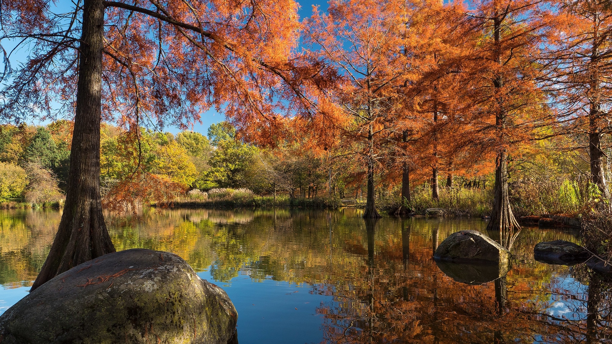 Edytor tapety: Jesienne drzewa na brzegach stawu