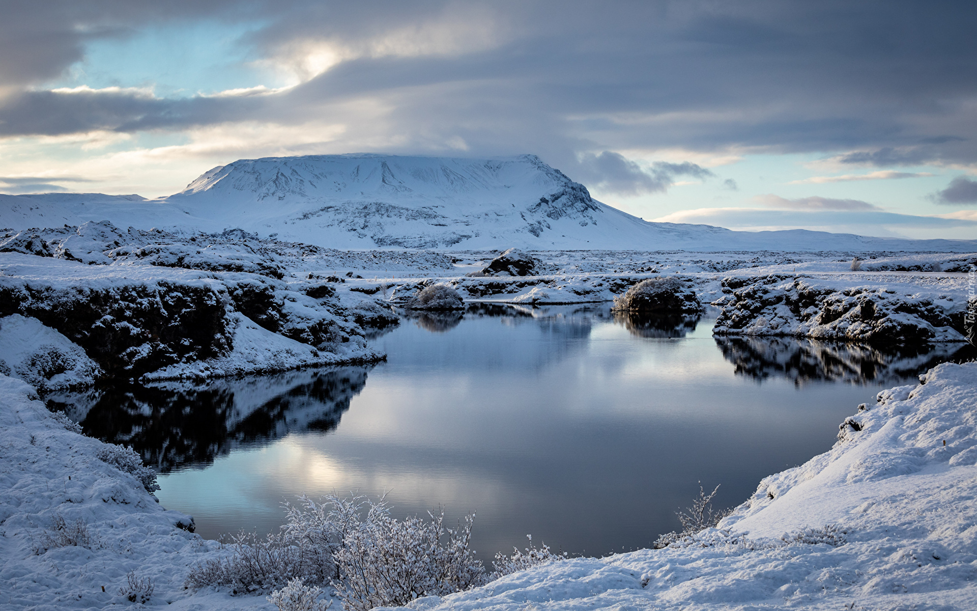 Edytor tapety: Jezioro i góra w tle zimową porą
