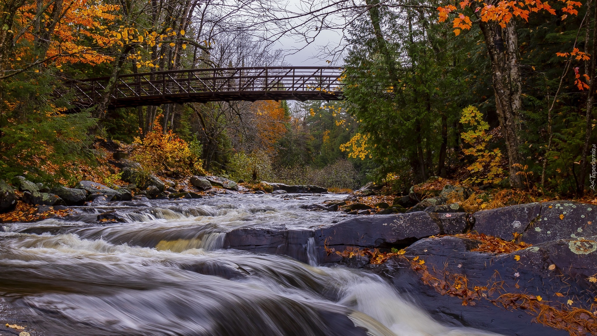 Edytor tapety: Most i jesienne drzewa nad rzeką