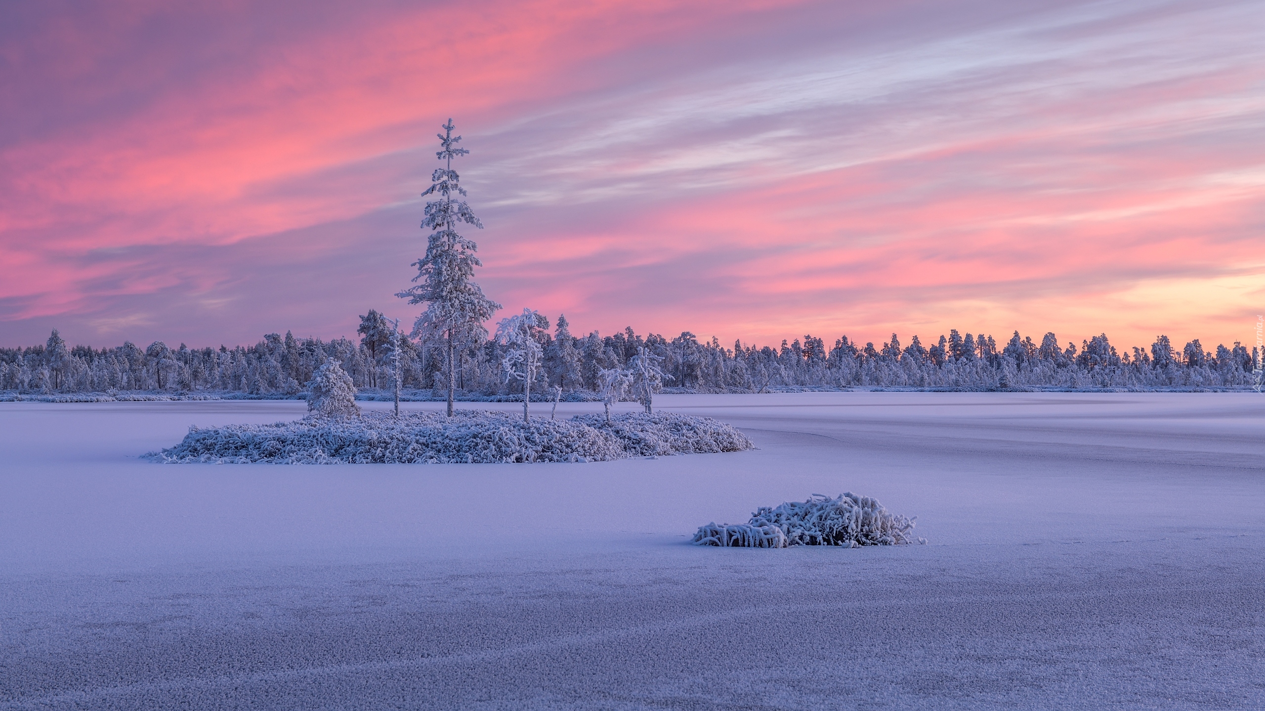 Edytor tapety: Oszronione drzewa nad jeziorem Ładoga