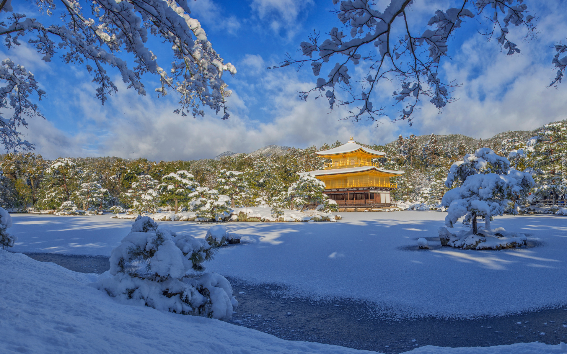 Edytor tapety: Świątynia Kinkaku ji zimową porą