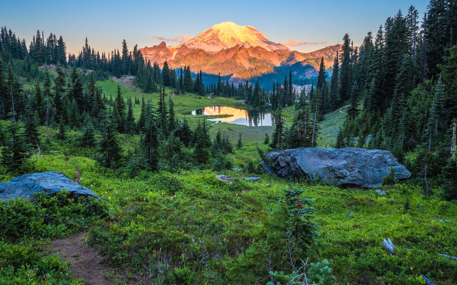 Edytor tapety: Widok na rozświetlony stratowulkan Mount Rainier