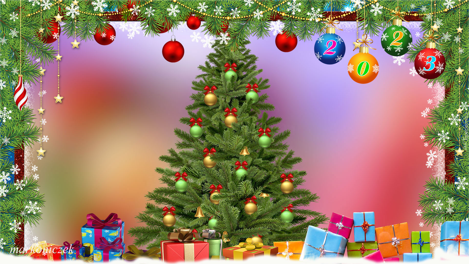 Edytor tapety: Prezenty ułożone pod choinką w grafice