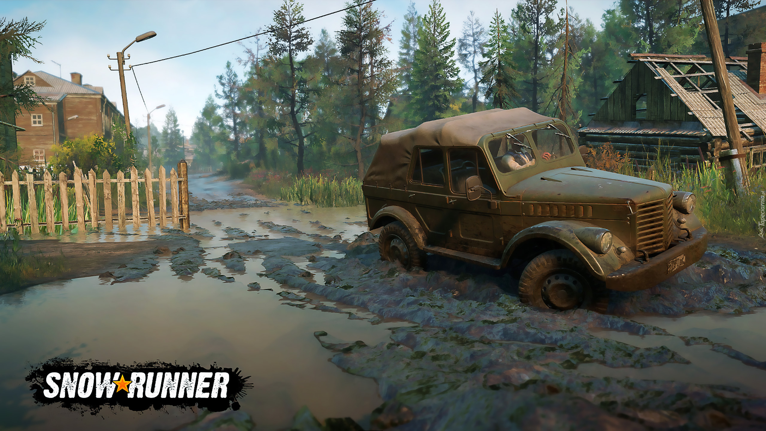Edytor tapety: Samochód terenowy z gry SnowRunner w błocie